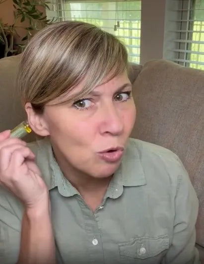 - Roll directly behind each ear, on your temples, or along the back of your neck — wherever you feel it most.
